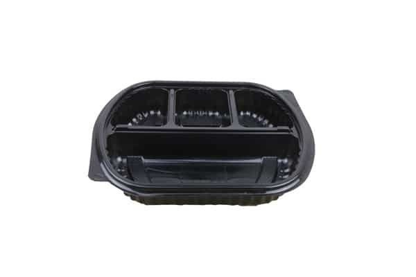 Sonuç olarak, siyah plastik 4 bölmeli mikrodalga kabı, restoran ve kafelerin paket servis ihtiyaçlarını karşılamak için pratik ve organize bir çözümdür. Şık tasarımıyla göz alıcı bir sunum sağlarken, dayanıklı ve hijyenik yapısıyla da güven verir. Müşterilerinize kaliteli ve rahat bir deneyim sunmak için ideal bir seçenektir.