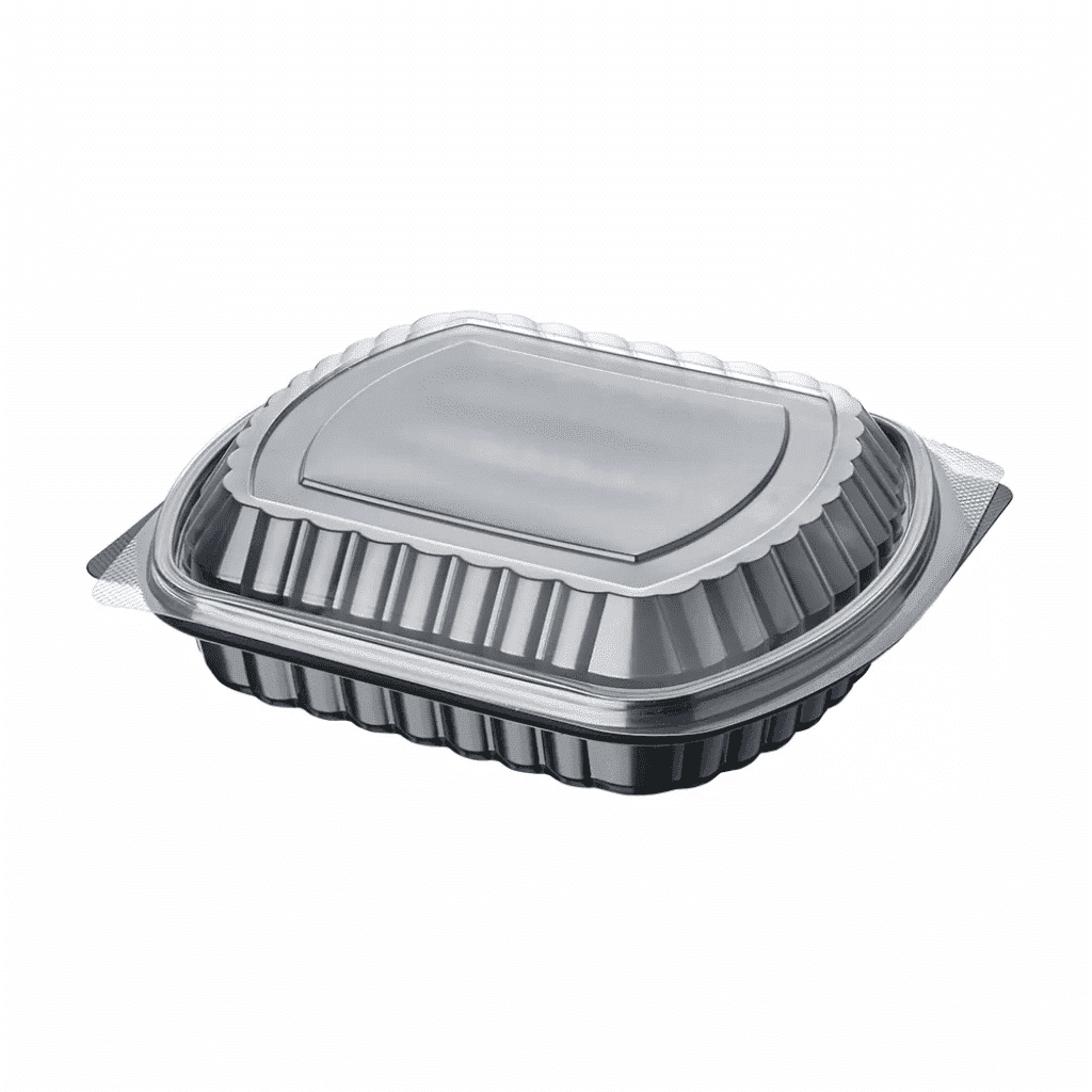 Bölmesiz mikrodalga kabın ölçüleri; 25 cm boy, 21 cm en, 5 cm derinliğinde siyah renkte, PP plastik, mikrodalgaya için uygun, sıcaklığa dayanıklı, şeffaf kapaklı, tek kullanımlık sıcak servis setidir.